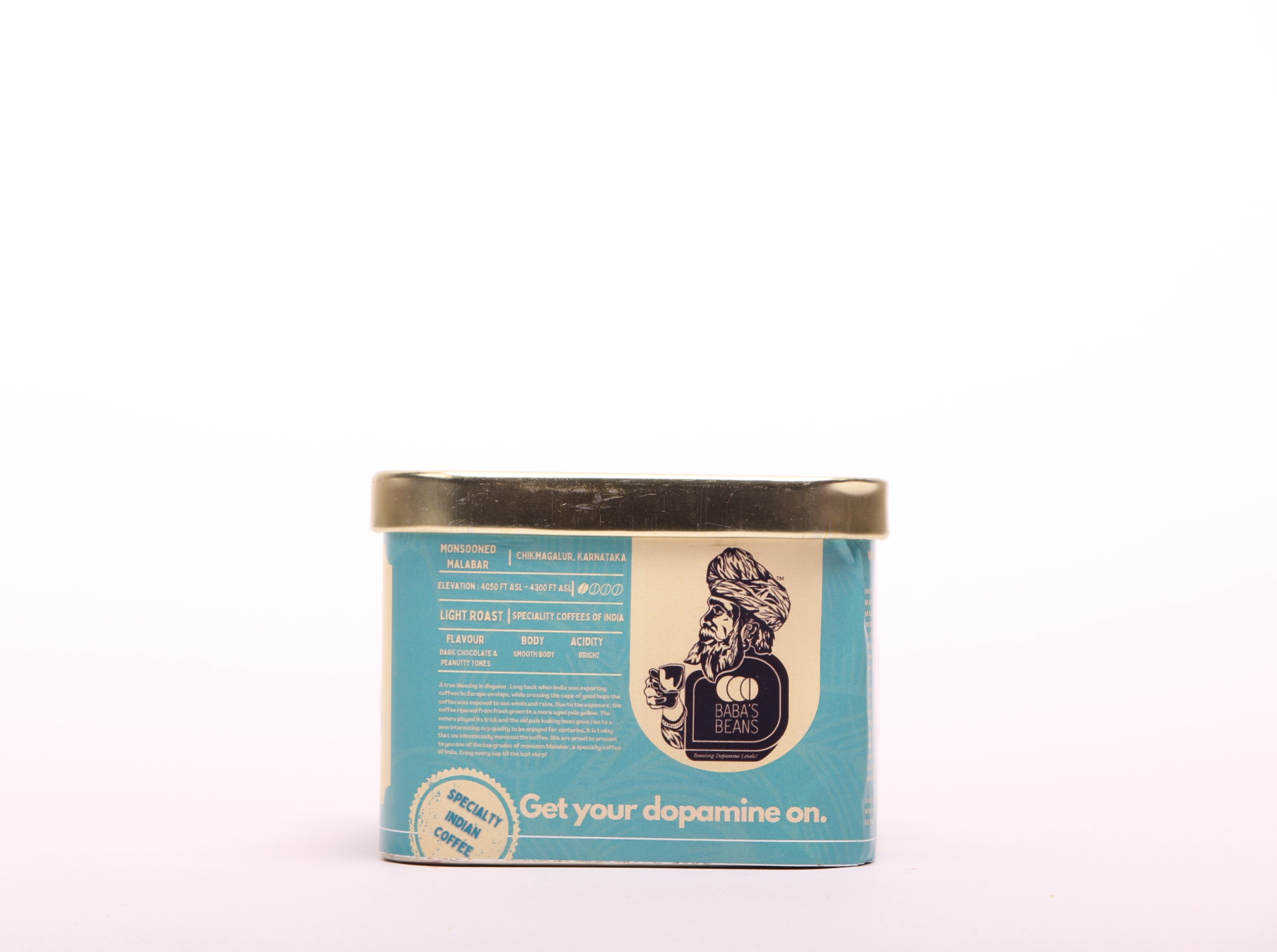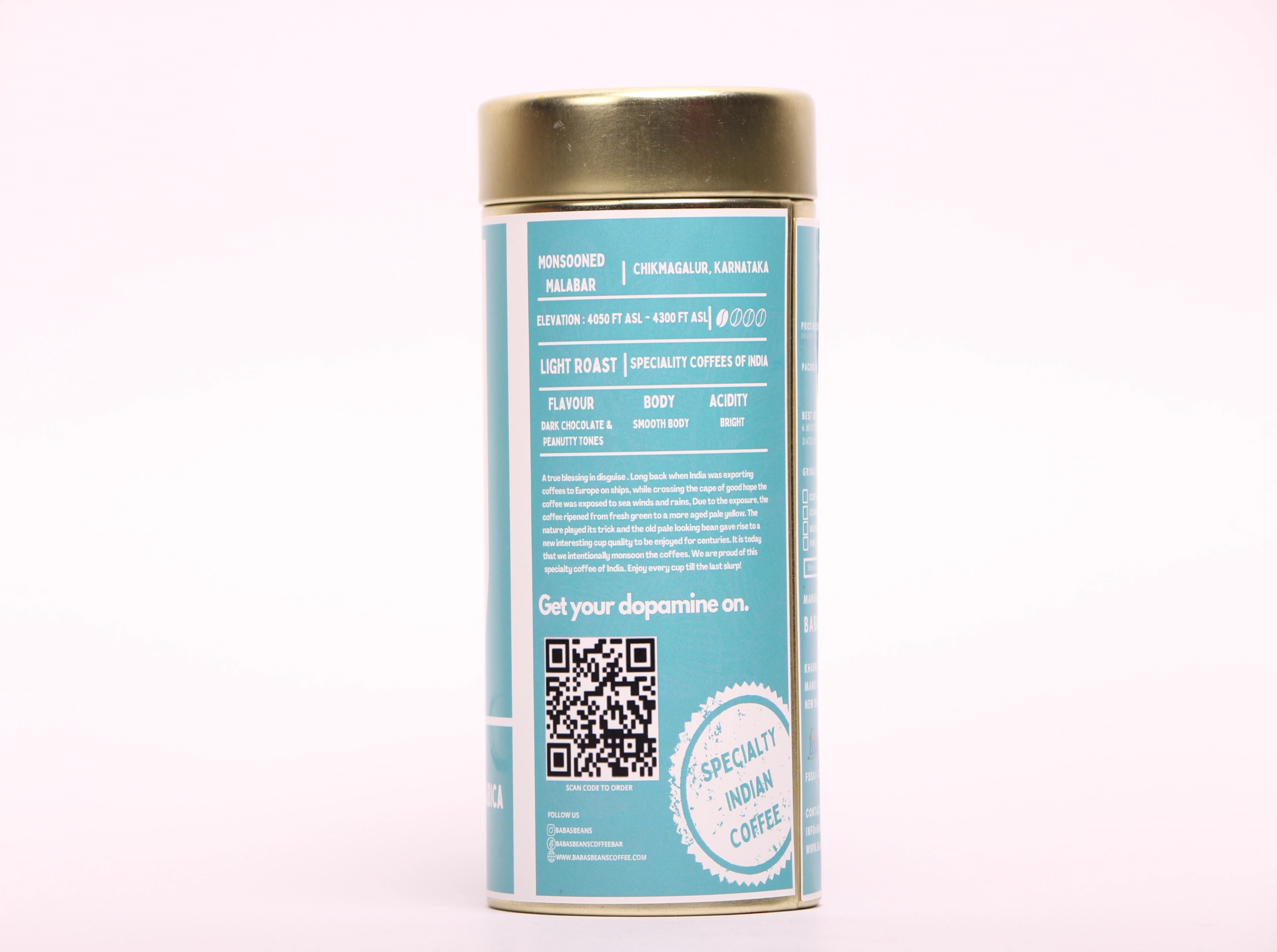 A true blessing in disguise . Long back when India was exporting coffees to Europe on ships, while crossing the cape of good hope the coffee was exposed to sea winds and rains, Due to the exposure, the coffee ripened from fresh green to a more aged pale yellow. The nature played its trick and the old pale looking bean gave rise to a new interesting cup quality to be enjoyed for centuries. It is today that we intentionally monsoon the coffee. We are proud to present to you one of the top grades of monsoon Malabar, Plantation A, a specialty coffee of India. Enjoy every cup till the last slurp!